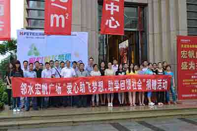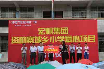 宏帆集團以連鎖發(fā)展城市綜合體為戰略目標,至2020年的發(fā)展戰略:計劃10年內在中西部區域中心城市開(kāi)發(fā)100個(gè)宏帆廣場(chǎng)綜合集。在為當地建一座未來(lái)新城的同時(shí),宏帆集團作出承諾——“建100個(gè)宏帆廣場(chǎng),支持100所中小學(xué)?!?,幫助更多的貧困學(xué)子成就夢(mèng)想,為社會(huì )發(fā)展貢獻宏帆人的一份力量。
